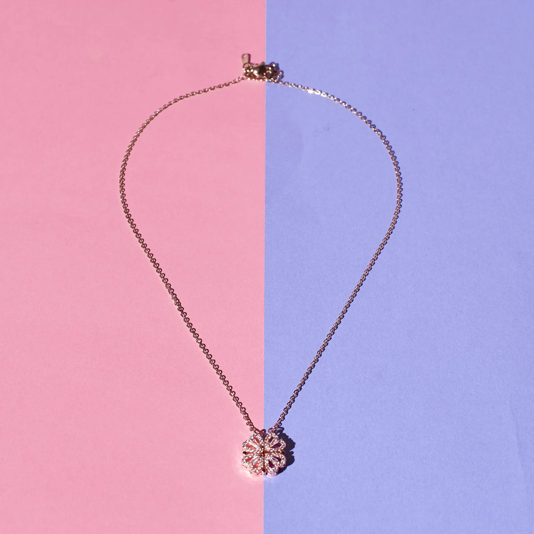 - Hyacinth 4-pcs Zircon Heart Magnetic Clover Necklace – Rose Gold